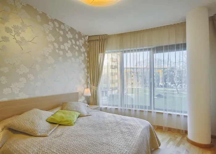 Апартаменты Apartamentai Liuks с балконом, гардеробной и зоной отдыха располагают диваном и рабочим столом, а также системой климат-контроля. Апартаменты также снабжены телевидением, а также детекторами дыма. В 1 ванной комнате апартаментов есть отдельный туалет и душ, а также фен и полотенца.